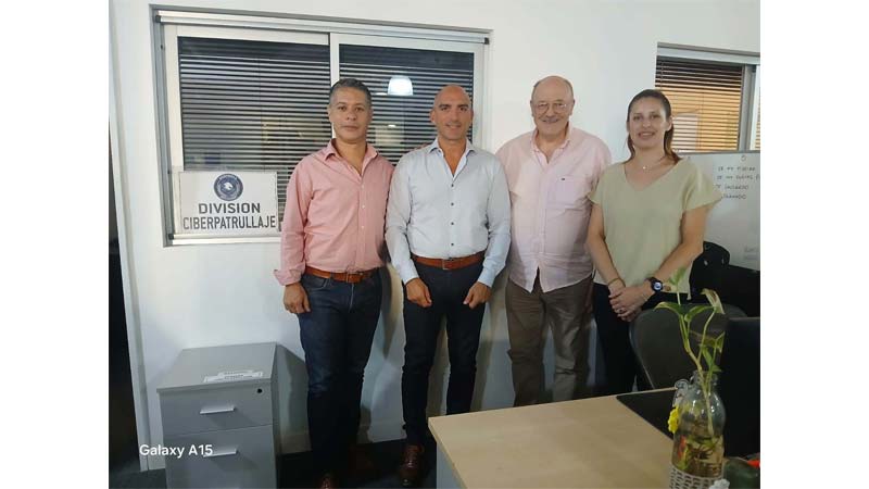 Del encuentro participaron el Comisario Inspector Diego Fusco , Jefe del Departamento de Investigación y Prevención del Ciberdelito, junto al Comisario Miguel Ramil y la Subcomisario María Teresa Refojos , integrantes de la División Ciberpatrullaje.