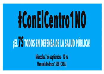 La Asociación de Profesionales del Centro de Salud Mental N°1, ubicado en Manuela Pedraza 1558, de la Ciudad Autónoma de Buenos Aires, convoca a participar del acto en la institución el día 7 de septiembre a las 12:00 horas, en apoyo a la petición a las autoridades correspondientes para que se efectivice el debido acto administrativo, legal que garantice la desafectación del Centro de Salud de una venta potencial, según surge del decreto 952.