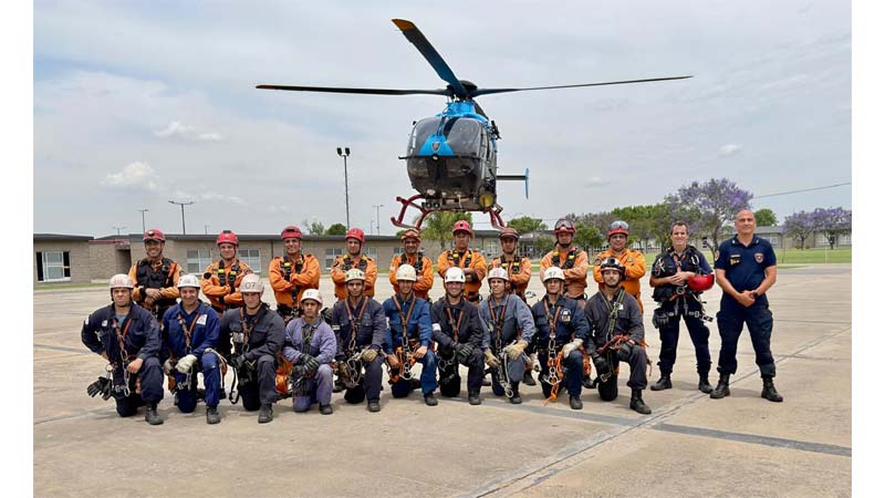 Durante el desarrollo del curso, los participantes llevaron a cabo entrenamientos de nado y rescate acuático en el Río de la Plata, que incluyeron prácticas de descenso desde helicóptero. Asimismo, se realizaron ejercicios de rapel desde aeronave hasta superficie y un simulacro de descenso de víctimas desde una estructura elevada en el Viejo Puente de La Boca mediante una tirolesa a 45 grados, extremando todas las medidas de seguridad que amerita el caso. Estas fueron algunas de las prácticas que se sumaron a las clases teóricas recibidas.